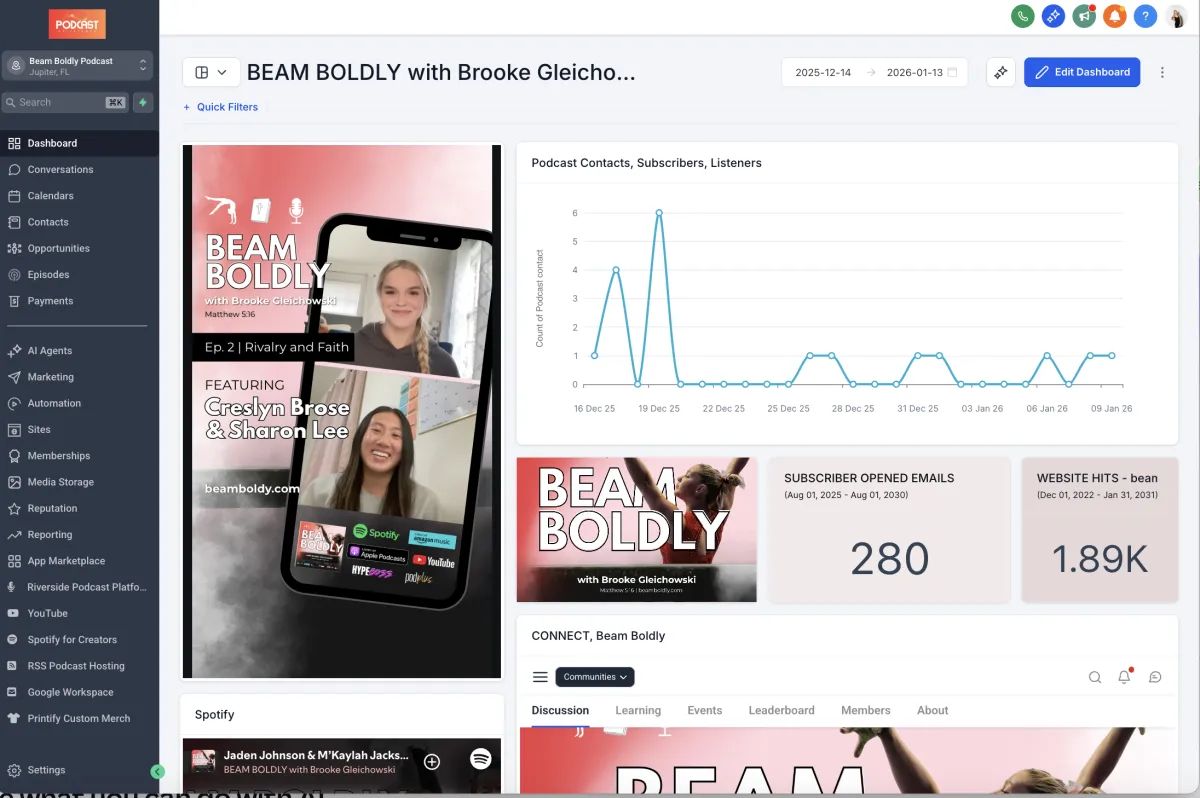 Podcast Brilliance replaces fragmented systems with a purpose-built podcast CRM that connects your guests, audience, sponsors, content, and monetization opportunities into one unified experience that is fully branded to you.