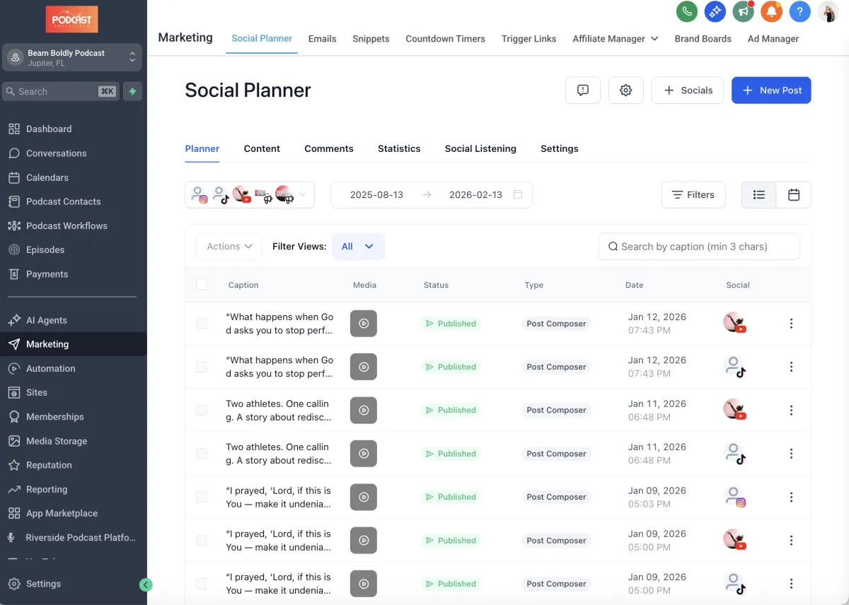 This is designed to support podcast and creator workflow seamlessly, empowering you to never wonder if a post went live, how a certain post is doing, and more!